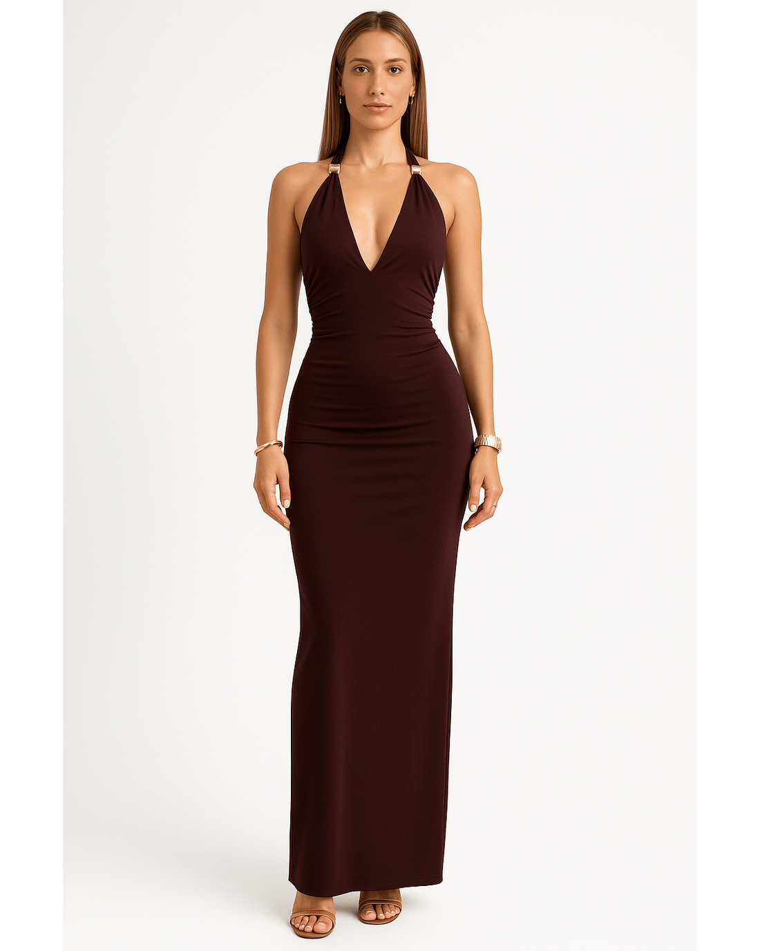 Slit Back Halter Neck Maxi Dress
