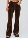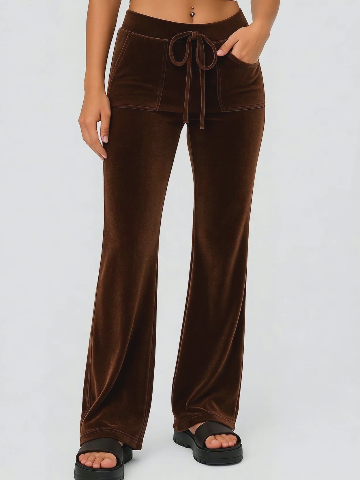 Velvet Flare Leg Pants - Soft Stretch Lounge Fit With Drawstring And Pockets For All Day Comfort